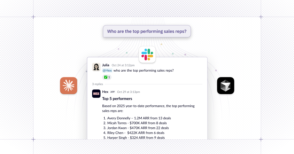 We’re bringing trusted context and answers from the Hex Agent directly to where you're already working.