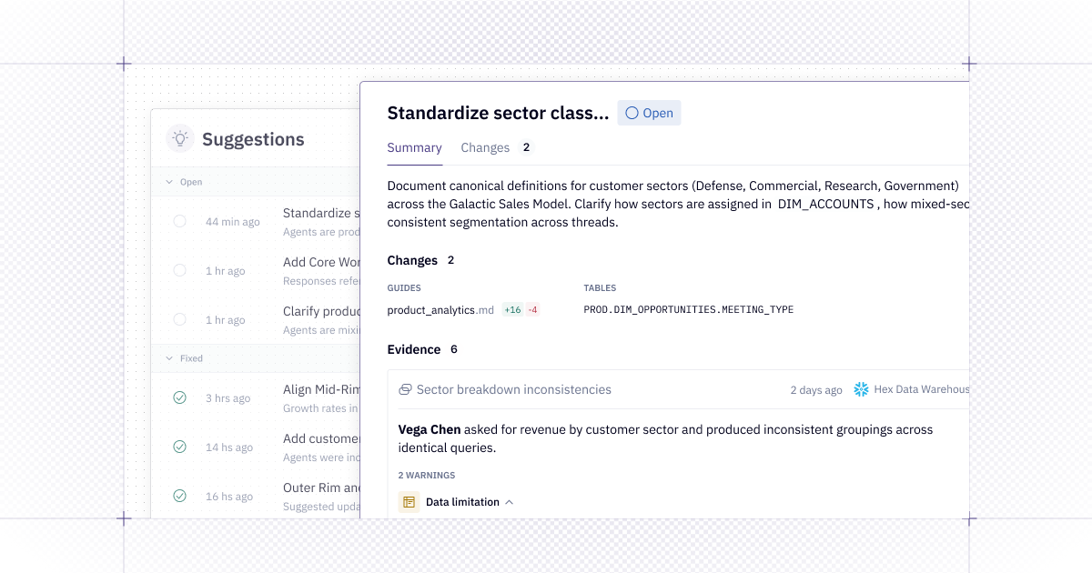 Every day we see how Hex changes the way people use data – and how good context creates trusted answers. Building your context up can be a lot of work - but it's even harder to know if it's working well and, crucially, how it can be improved.
